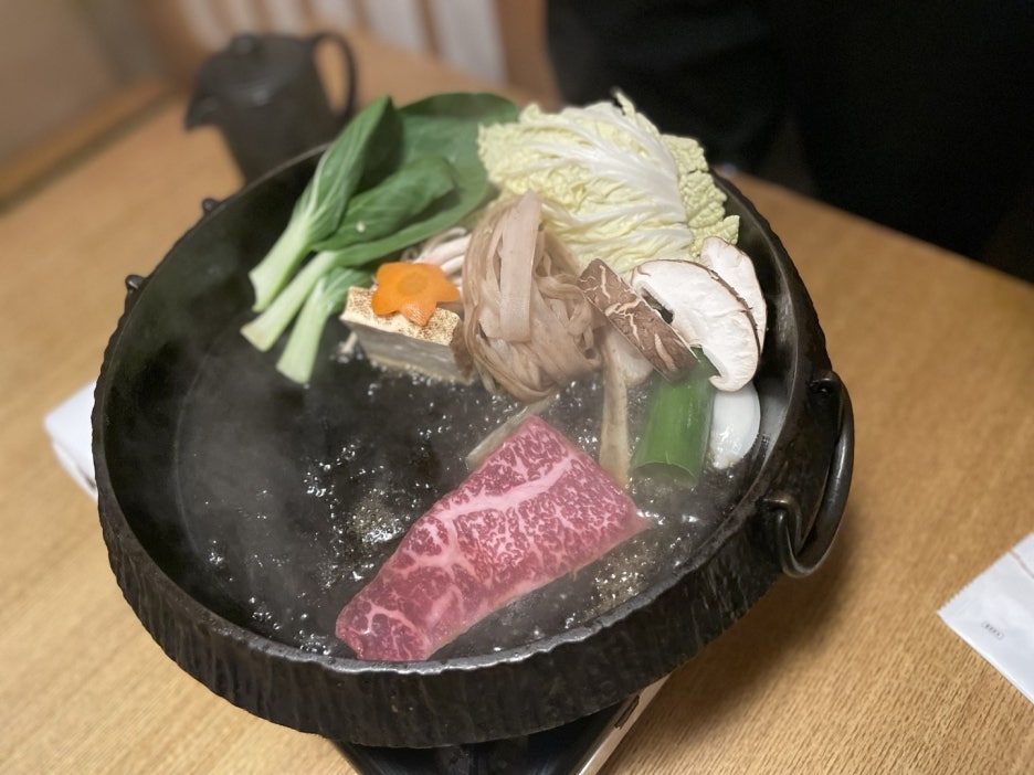 짜란, 스키야키에요! 오랜만에 정말 제대로 된 스키야키를 먹었어요! 간장으로 조리면서 먹었는데
