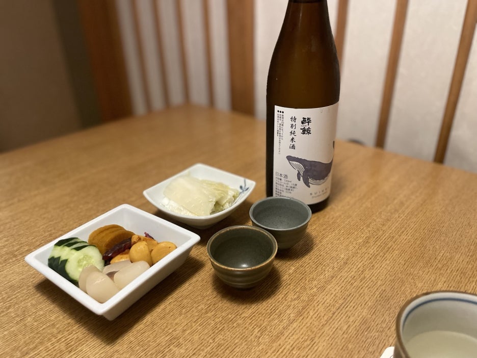 시그니처 디너 코스요리를 시키고, 사케도 한 병 주문했어요!
